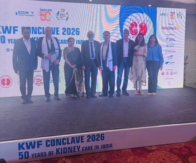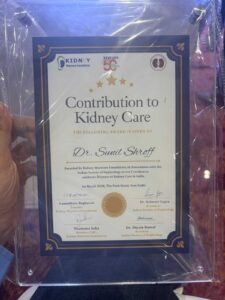 At the KWF Conclave 2026, organized by the Kidney Warriors Foundation to commemorate 50 years of kidney care in India, Simran had the honor of representing Dr. Sunil Shroff, who was conferred the “Contribution to Kidney Care” award in recognition of his longstanding efforts in advancing kidney transplantation and organ donation in the country. The award ceremony, held at The Park Hotel, brought together leaders and professionals working in nephrology and transplant care. On behalf of Dr. Shroff, Ms. Simran Anand, Sr. Programme Officer at MF NCR, received the award on stage during the conclave, marking a proud moment of acknowledgment for his work and the broader mission of promoting organ donation and kidney care. The certificate presented during the event highlighted the collaboration between the Kidney Warriors Foundation and the Indian Society of Nephrology, recognizing Dr. Shroff’s significant contribution to strengthening kidney care in India.